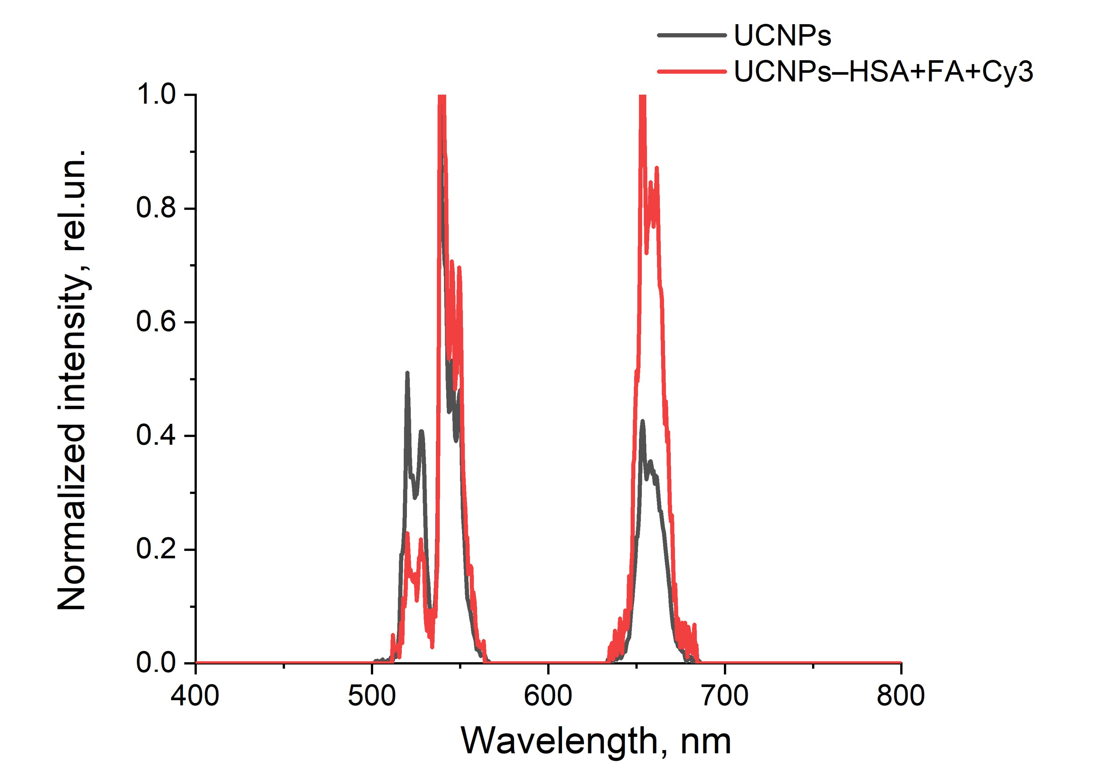 Luminescence spectra of the UCNPs and UCNPs–HSA+FA+Cy3.