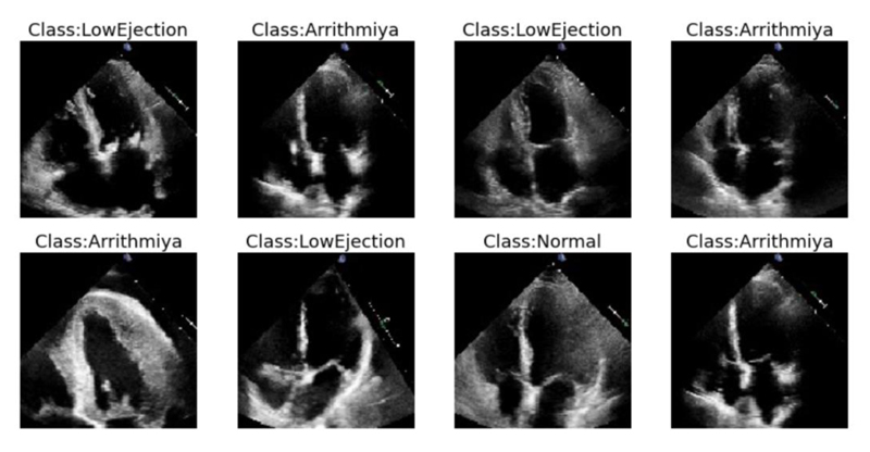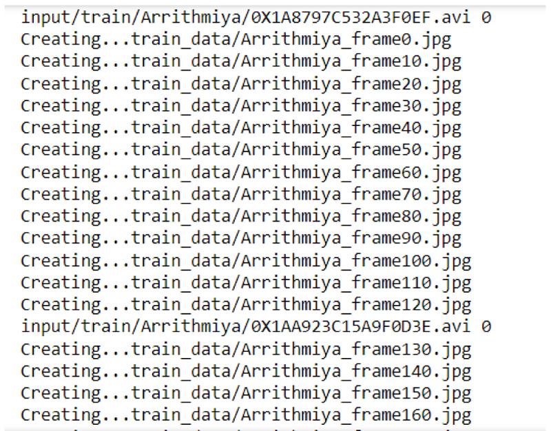 The above figure shows the samples of echocardiogram video data sets which are converted into frames as low normal and Arrhythmia.