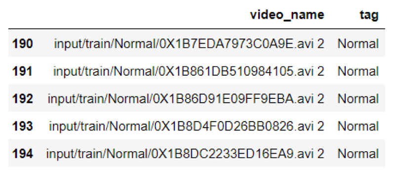 In the data preprocessing, the input is taken as video datasets as shown in the below figure, with the video name and tags.
