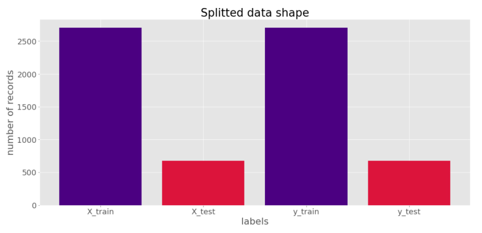 After the data preprocessing stage, the data splitting is done in which around 80% of the data is used for training purposes and the remaining 20% is used for testing purposes as depicted in Fig. (6).