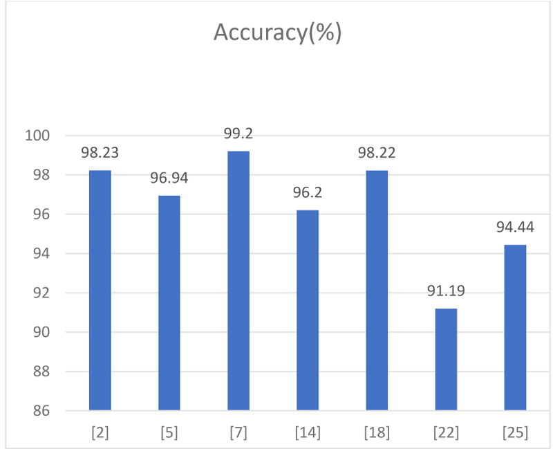 From the above graph (Table 1, Fig. 7), we have taken the accuracy rate of different papers proposed by the authors analyzed and depicted in the graph.