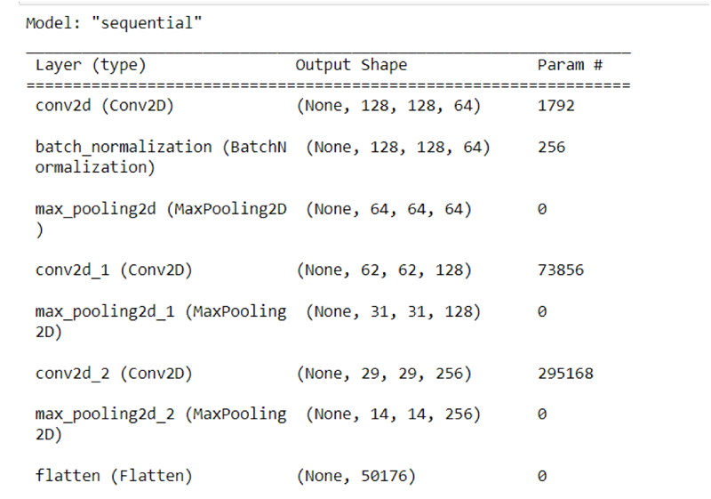 Using the Convolutional Neural Network the data has been layered into different layers as shown in the Figure in which the classification of different convolution layers can be seen.