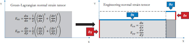 Moreover, the equations used to calculate Green-Lagrangian strain are: