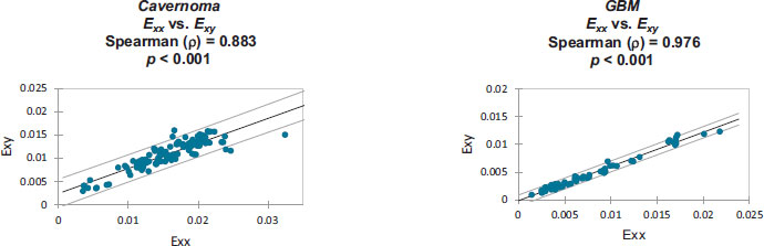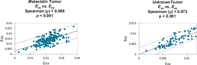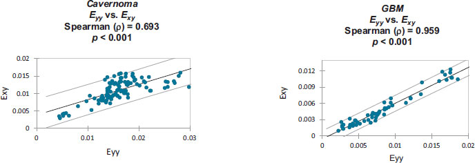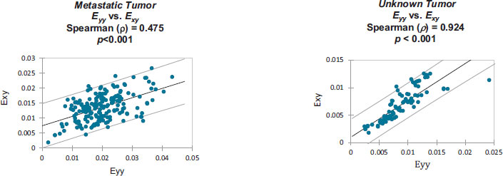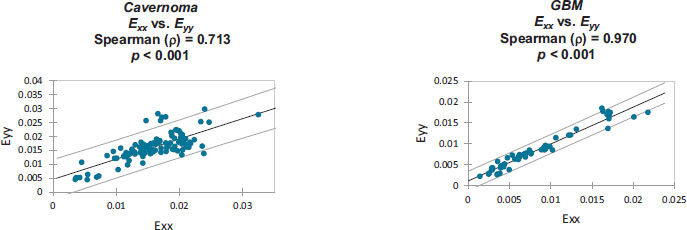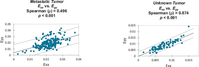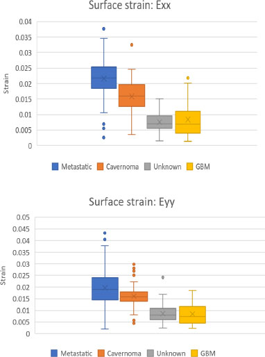 Specifically, the GBM [7] and Unknown Tumor [9] datasets produced statistically similar data for normal strain in both the X and Y directions.
