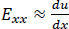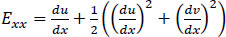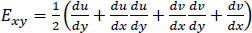 Note that Exx and Eyy represent normal strain in the x and y directions respectively, whereas Exy represents shear strain. Furthermore, the x and y axes are associated with the horizontal and vertical directions, respectively.