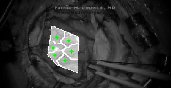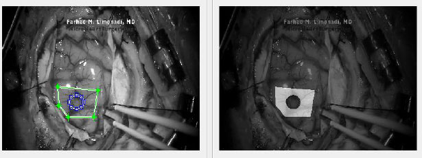 Moreover, DIC software usually requires randomly placed and positioned “artifacts” through which it can detect movement. Displacement data is then calculated using pattern precognition. Typically, artificial speckle patterns are painted or sprayed onto a test surface for this purpose. This was impossible in this application, as the source footage was based upon previously recorded YouTube craniotomy videos.