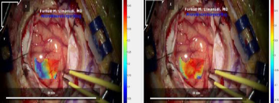 Instead of relying on the palpation of the surface of the brain and qualitatively “guessing” its pulsatility, a real-time measurement of pulsatility would allow for a greater understanding of the perfusion of different cerebral surface regions. For example, ranges of CSS values for perfused vs. underperfused regions or along surface topography could eventually be compiled with respect to different patient populations. These data would provide the surgeon and anesthesiologist with additional information for comparison during surgery.