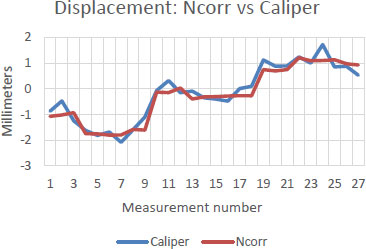 Their method of measuring displacement was also very different from that used by Ncorr. Specifically, Ji et al. used an optical flow algorithm with an additional gradient constancy assumption to allow for the extraction of displacement vectors.