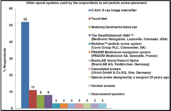 Breakdown of “Other(s)” spinal systems used by the respondents to aid pedicle screw placement (follow-on from Question 2).