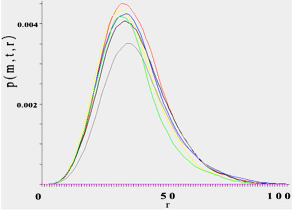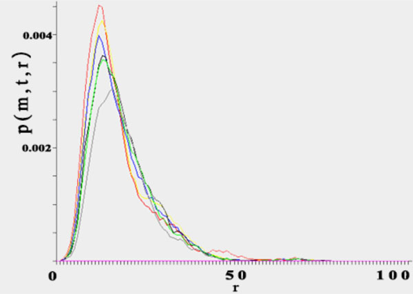 We reconstructed different delay of the pulse data extracted in 5-dimensional based on the phase space reconstruction and PDF function, and then, we constructed the PDF by distance value of each data. Results are visually summarized in Fig. (2).