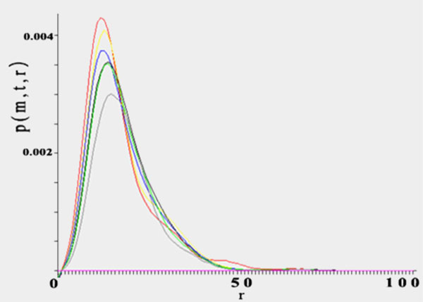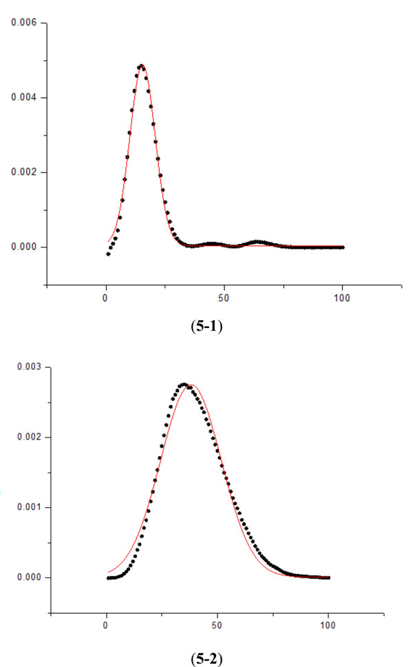 With computer-aided technology [16], Gaussian curve fitting was used for the PDF curve with delay time t=1. As Fig. (5) shows, the fitting R-squared values are more than 0.95. The curve of NSR is shown as Fig. (5-1), and AF is shown as Fig. (5-2).