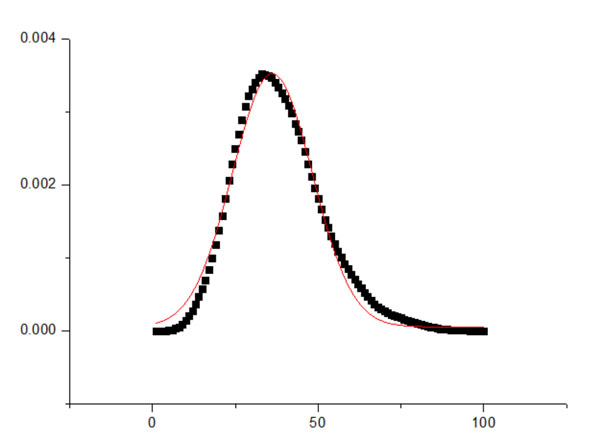 PDF curve after fitting for data from MIT-BIH Fibrillation Database.